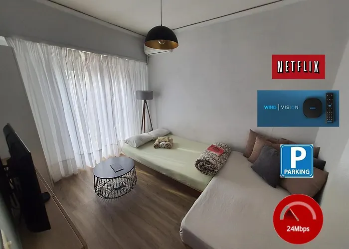 Uniwersytet Patraski znajduje się prawie 15 min jazdy samochodem od 1-pokojowego apartamentu Central, natomiast Agiou Nikolaou znajduje się w pobliżu. Apartament o powierzchni 24 m^2 oferuje taras i parking w pobliżu.